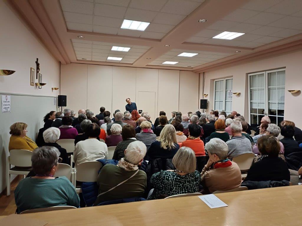 Am 2. Vortragsabend unseres heurigen Glaubensseminars, am 26.02., nahmen erfreulicherweise 87 Personen teil. Das Thema “Geheimkirche in der ehemaligen Tschechoslowakei- Notlösung oder Zukunftsperspektive?“, hat sehr viele Interessierte angelockt. Mag. Gabriel Kozuch, dessen Vater Priester war, hat über das Schicksal der Geheimkirche in der ehemaligen Tschechoslowakei aus der damaligen Zeit erzählt. Er war zu dieser Zeit Kind und hat den Besuchern Einblick gegeben, wie er die damalige Zeit miterlebt hat. Es war wirklich sehr beeindruckend und traurig zugleich. Pfarrer Gabriel hat auch berichtet, dass er über unseren Altbischof Paul Iby nach Wien ins Priesterseminar gekommen ist. Ihm verdankt er, dass er in Wien Theologie studieren konnte. Auch dieses Mal gab es danach wieder nette Gespräche bei Brot und Wein. Wäre schön, wenn zu den nächsten zwei Glaubensabenden am 4. März und 11. März 2024 auch so viele Teilnehmer kommen. Das Thema „ 2000 Jahre Christentum – Eine Religion verändert die Welt“ wird sicher auch sehr spannend.
