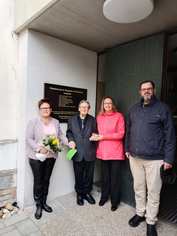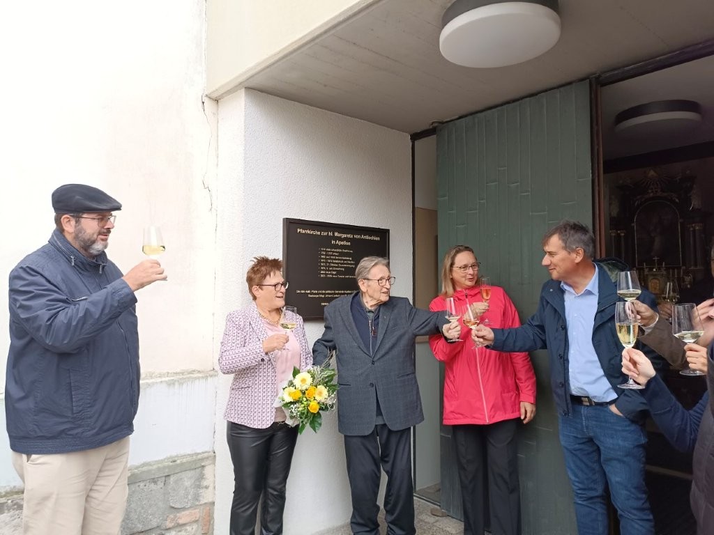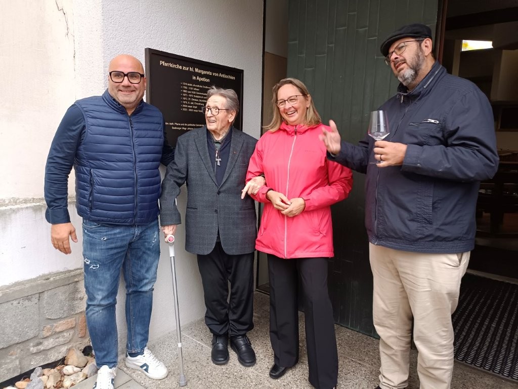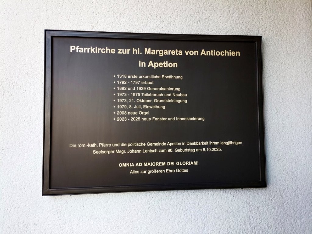 Der Pfarrgemeinderat und die politische Gemeinde schenkte ihm zu diesem Ehrentag eine Gedenktafel, die beim Eingang in die Kirche auf der Seite beim Monsignore-Lentsch-Platz angebracht wurde.