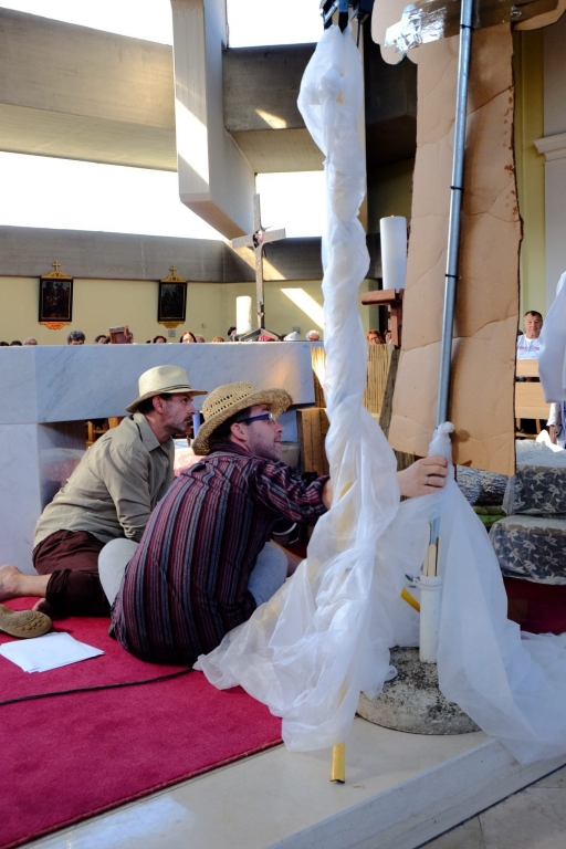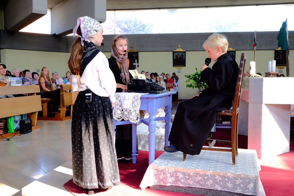 JUNGEN SCHAR mit ihren Eltern und vielen Helfern auf die Vorführung des Musicals „Das Wunder von Fatima“ vorbereitet.
