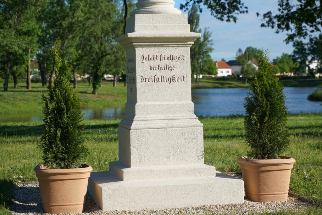 Gerade rechtzeitig vor dem Dreifaltigkeitssonntag, an dem unsere Pfarre nach alter Tradition mit der Prozession zur Dreifaltigkeitssäule geht, konnte die Sanierung samt Schrifterneuerung der Säule abgeschlossen werden. Und so können wir uns alle daran erfreuen.