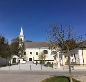 Schlosspark Barockschloss Halbturn – durch Weingärten – Wegkreuz und weiter – Kirche im Dorfmuseum Mönchhof – Rundweg durch Weingärten – Barockschloss Halbturn