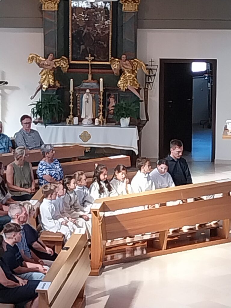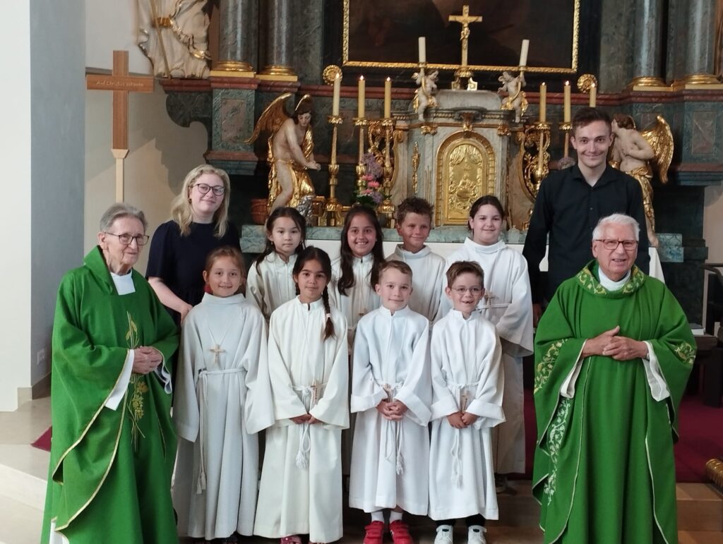 Annabell, Anna, Daniel, Emily, Greta, Markus, Mathilda und Matteo wurden am Kirtagsonntag vom Pfarrer Böck angelobt. Elena und Michael haben die Kinder begleitet. Die Pfarrgemeinde wünscht den Kindern viel Freude bei ihrem sehr wichtigen Dienst am Altar und bedankt sich für die Bereitschaft.