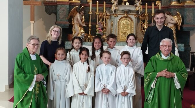 Annabell, Anna, Daniel, Emily, Greta, Markus, Mathilda und Matteo wurden am Kirtagsonntag vom Pfarrer Böck angelobt. Elena und Michael haben die Kinder begleitet. Die Pfarrgemeinde wünscht den Kindern viel Freude bei ihrem sehr wichtigen Dienst am Altar und bedankt sich für die Bereitschaft.