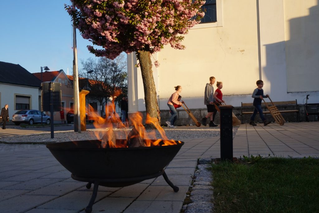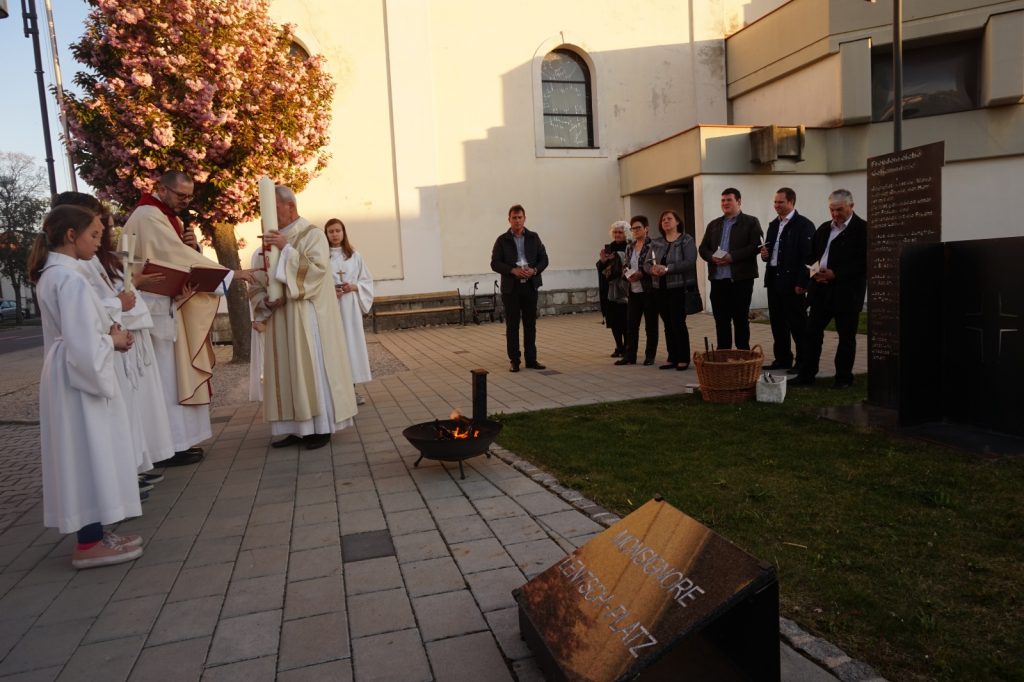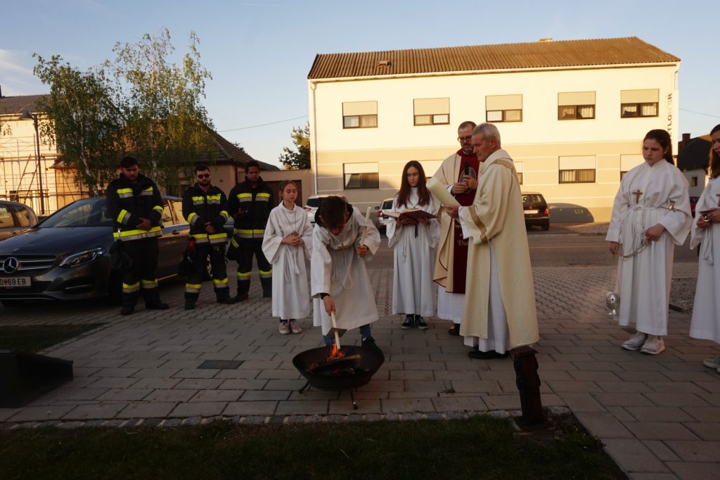 Am Osterfeuer vor unserer Kirche begannen wir die Feier der Auferstehung mit dem entzünden der Osterkerze.