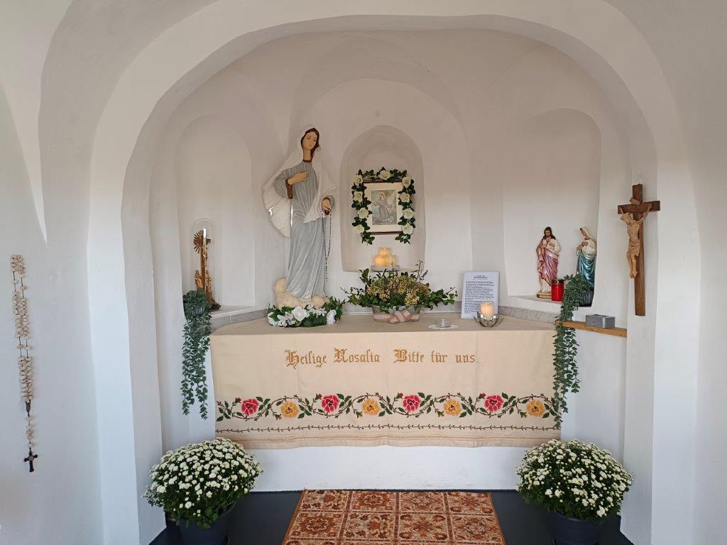 Am Sonntag, dem 7. September 2025 wurde wieder zum Gedenktag der hl. Rosalia von Palermo, der Patronin gegen Pest und schwerer Krankheit zu Fuß, per Rad oder mit dem Auto zur Rosalienkapelle gepilgert. Um 17:00 Uhr waren alle versammelt und Diakon Michael hat die Andacht geleitet. Viele Chormitglieder sind gekommen, um das Lied zur hl. Rosalia in einem würdigen Rahmen zu singen. Danach gab es ein erfrischendes Getränk, Anton hat dafür gesorgt. Danke an alle, die gekommen sind!