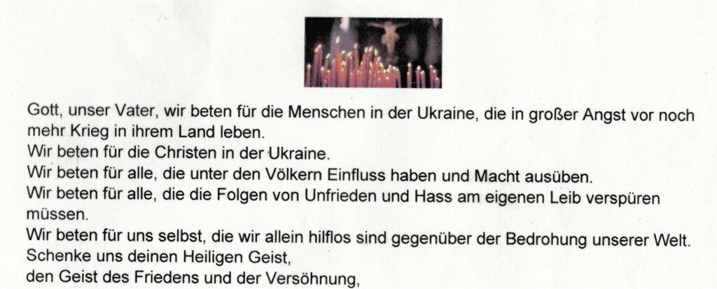 Pfarrer Schweifer ruft in diesen Tagen zum Gebet für den Frieden in der Ukraine, damit der Krieg beendet wird und die Menschen die Einsicht gewinnen, damit das Gute siegt und nicht das Böse.