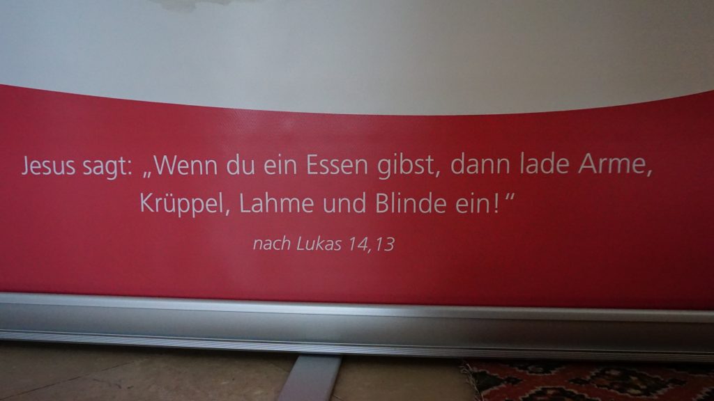 Die ironischen Texte mit Karrikaturen und Bibelstellen zeigen in einfacher Sprache den Umgang mit Menschen mit Behinderung auf. Somit erzeugt sie beim Betrachter ein Grundverständnis für Inklusion.